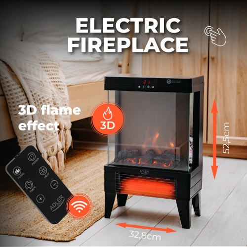 AD 7755 Kominek elektryczny LED z pilotem | 3D efekt płomienia | 2 moce grzania 1000W/2000W | Termostat