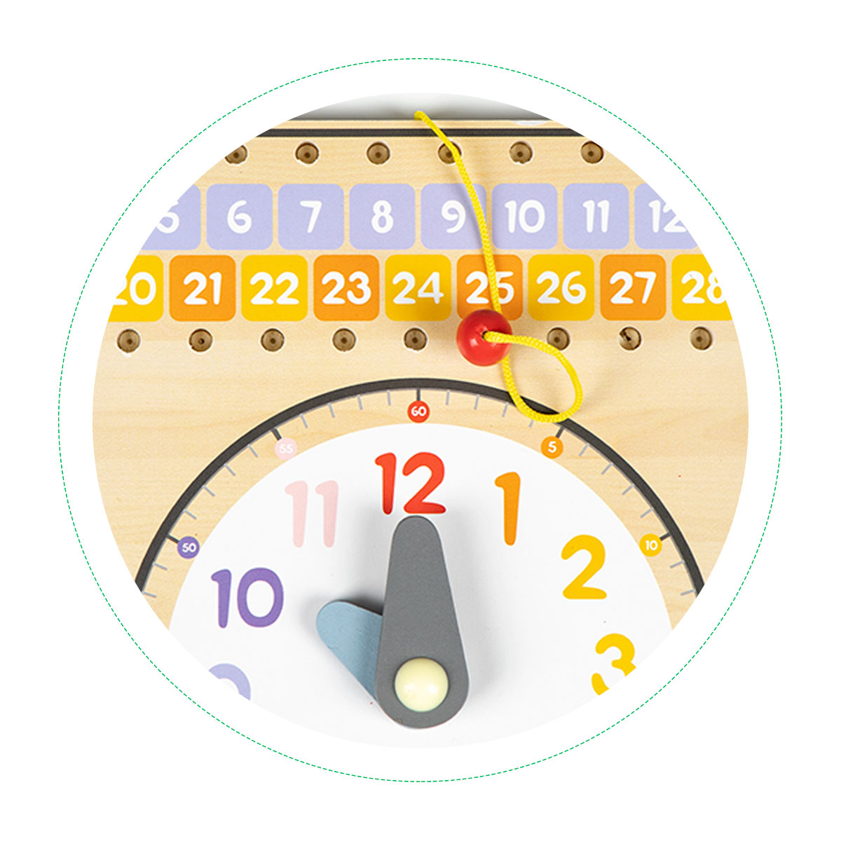 Tablica pozwoli maluchom na poznanie dni tygodnia, miesięcy, pór roku, oraz nauczy poprawnego odczytywania godziny. Poza nauką zabawka sprawi wile radości i rozwinie zdolności manualne dziecka.
