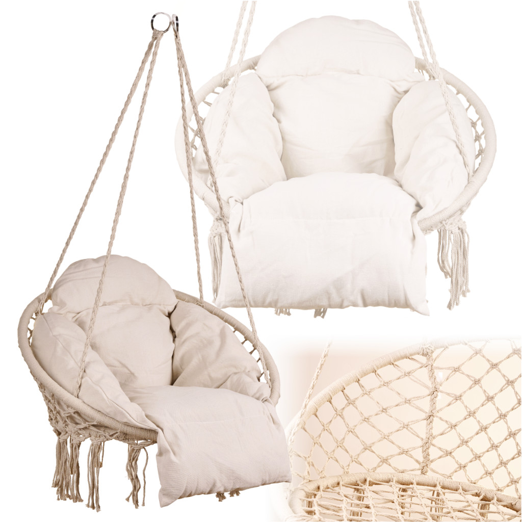 Huśtawka ogrodowa LUARO bocianie gniazdo z poduszką XXL ecru 80cm 150kg