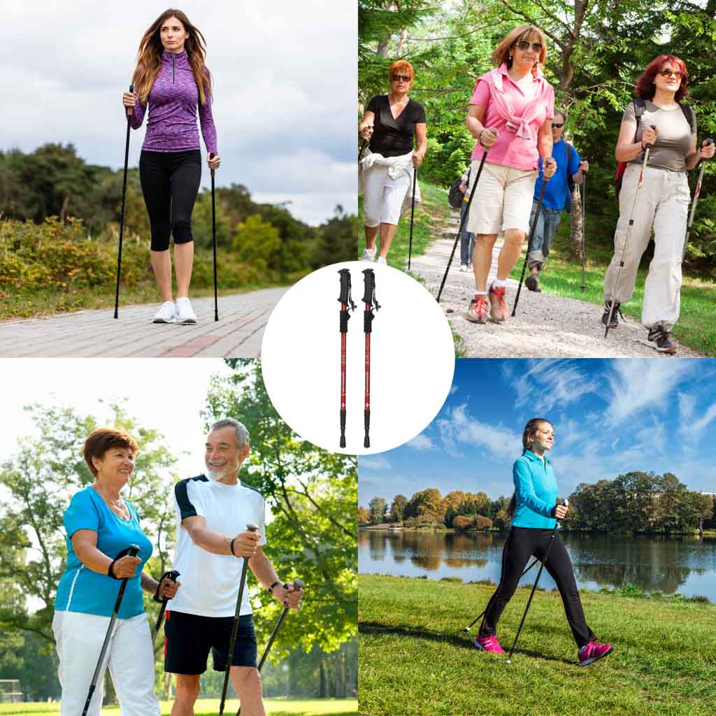 Podczas turystyki pieszej lub rekreacyjnych spacerów, kije do nordic walking zapewniają wspomaganie pracy rąk, co powoduje wyprostowanie sylwetki i wydłużenie kręgosłupa, co zmniejsza nacisk na krążki międzykręgowe, odciąża stawy, kolana i biodra. Utrzymania prawidłowej postawy ciała podczas spaceru, przekłada się na efektywny trening oraz bezpieczeństwo podczas wędrówki z kijami nordic walking w kolorze czerwonym.