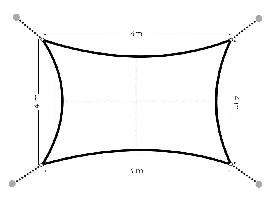 Przy montażu żagli pamiętaj o delikatnym nachyleniu (około 20°), aby wspomagać działanie hydrofobowe materiału. W ten sposób podczas opadów, woda będzie swobodnie spływać z daszku. Odpowiednie napięcie żagla jest bardzo ważne, by nie tworzyły się nieestetyczne zagięcia i kieszenie wodne. Dlatego daszek należy naciągać po przekątnych materiału (od rogu do rogu).
