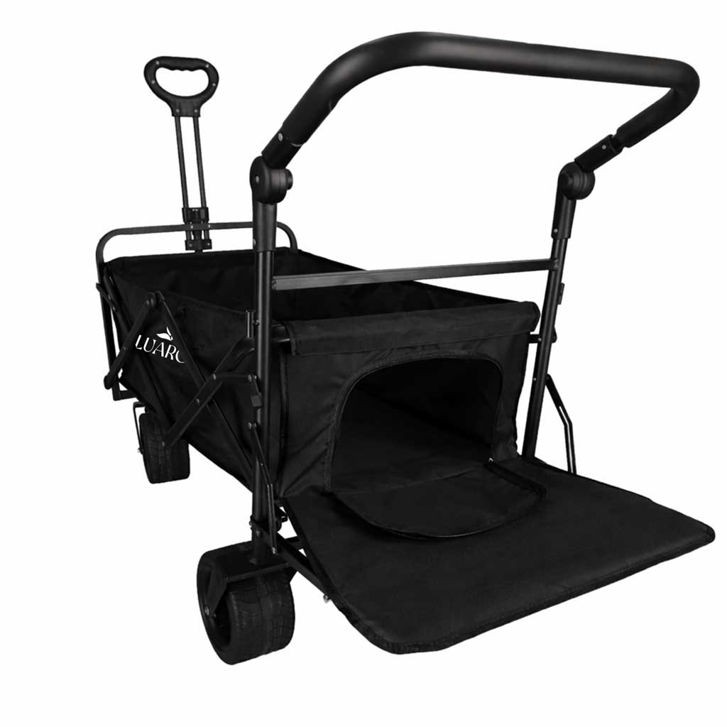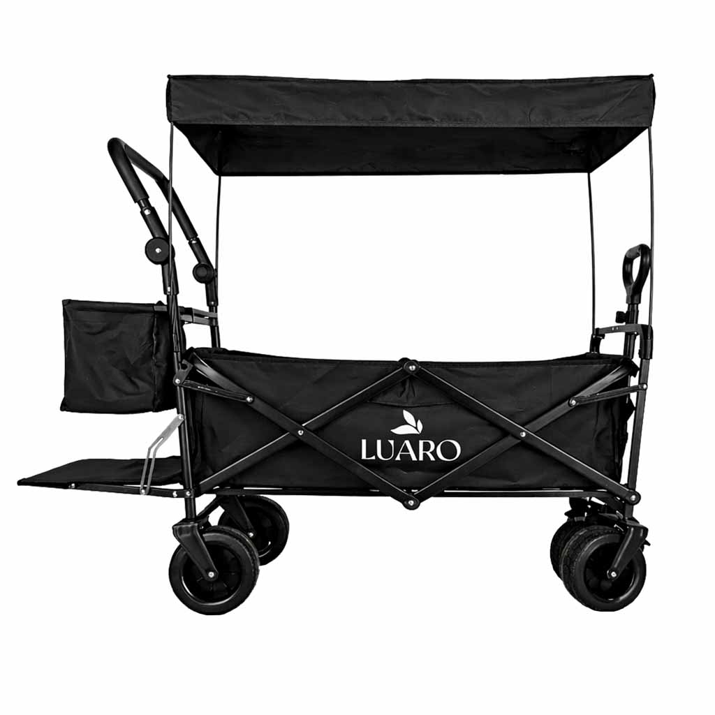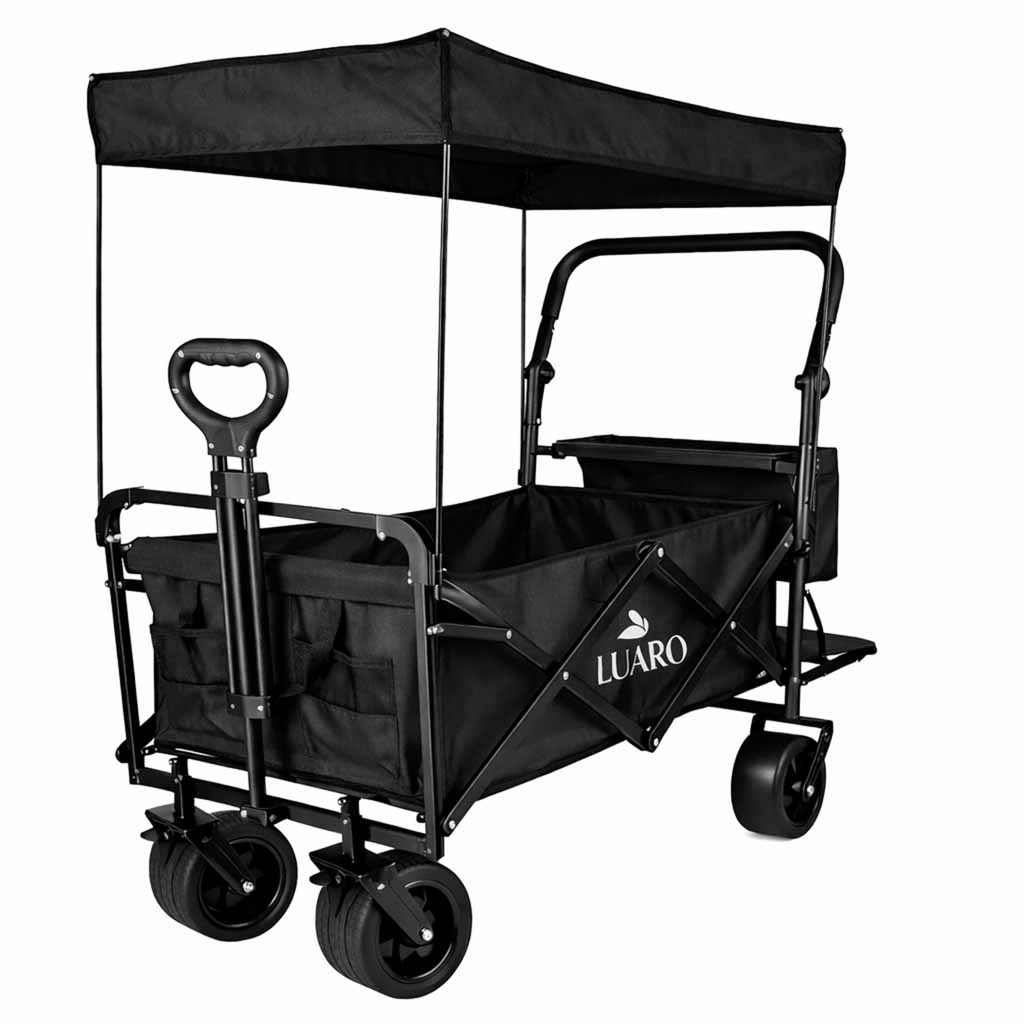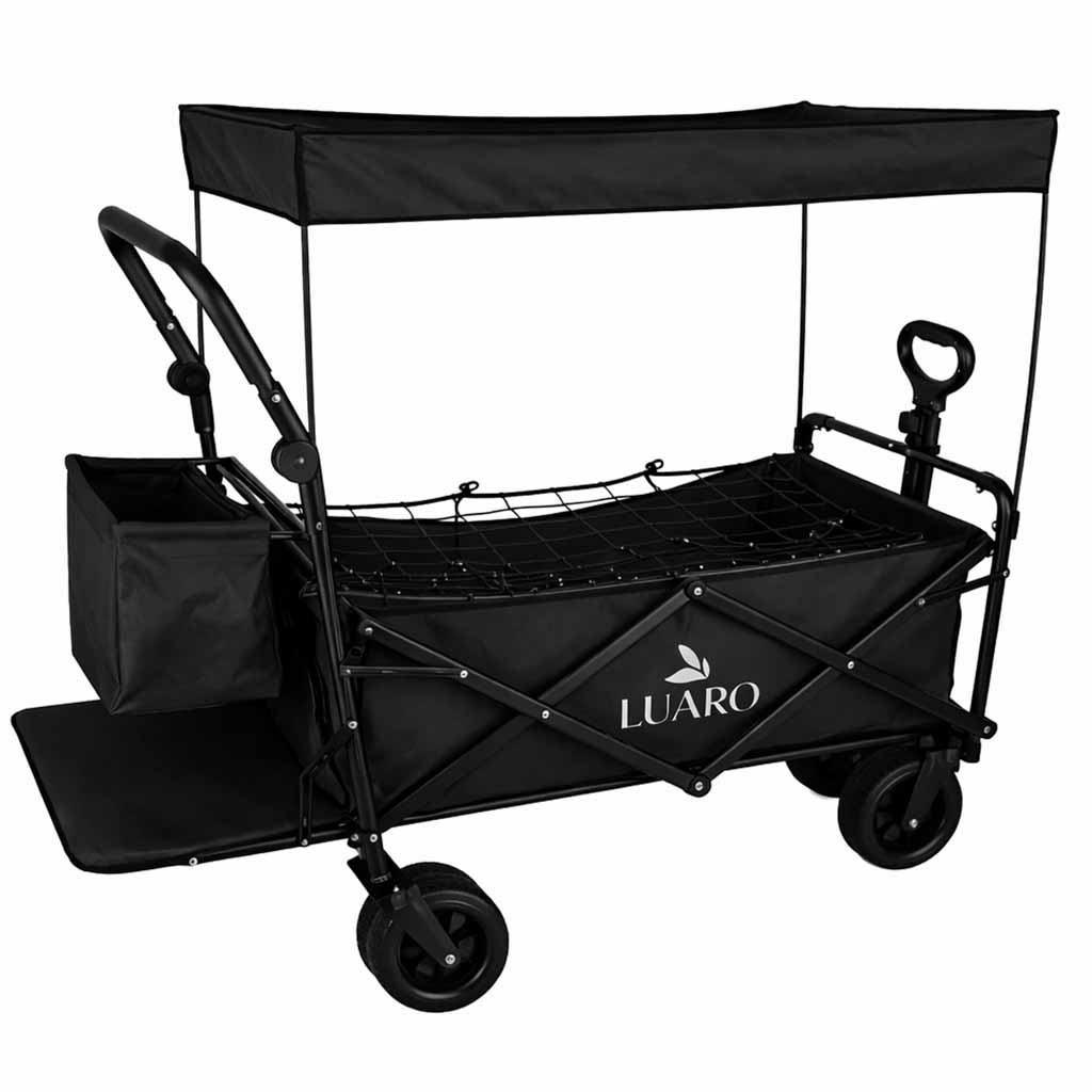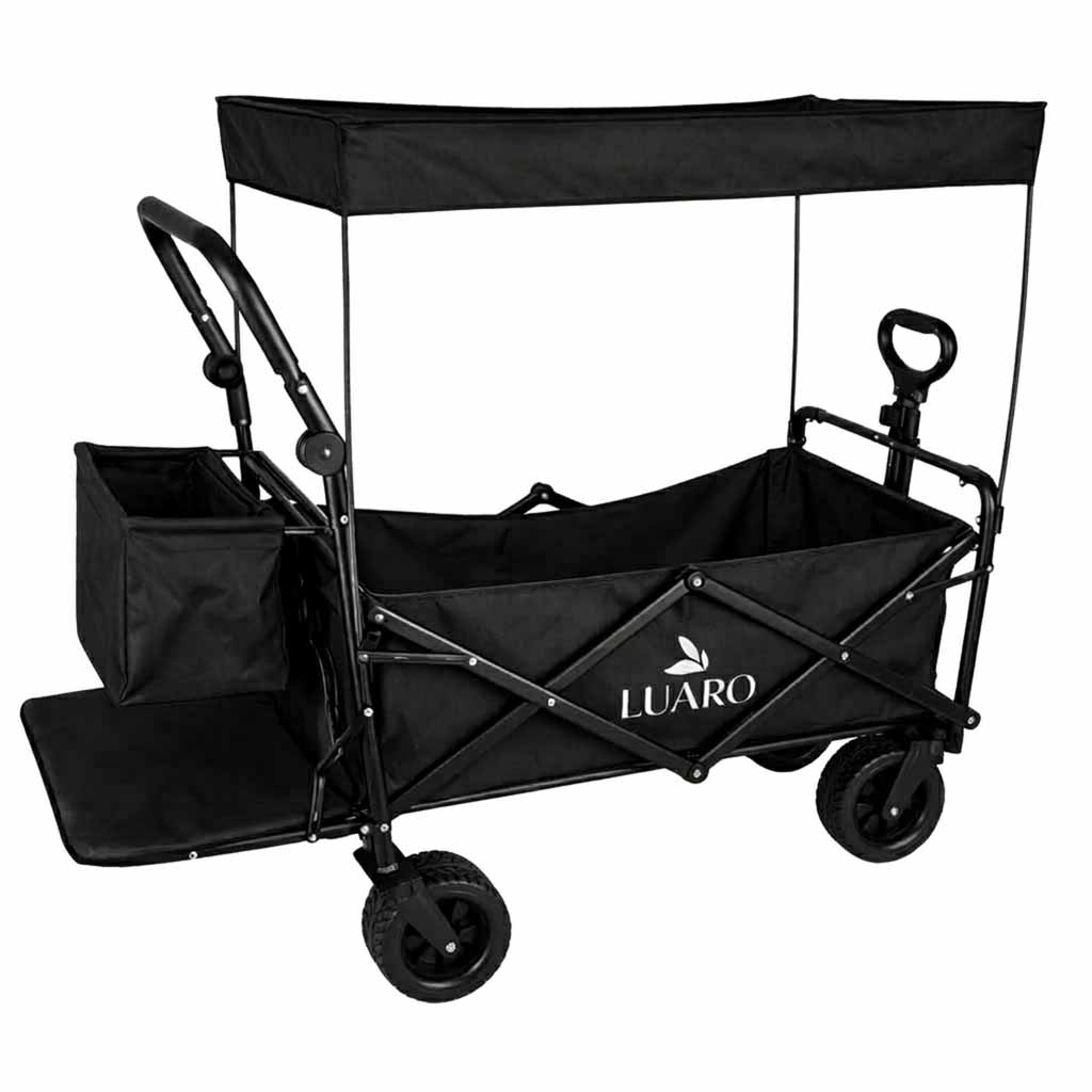 Wózek transportowy LUARO plażowy składany z daszkiem i siatką 120l czarny